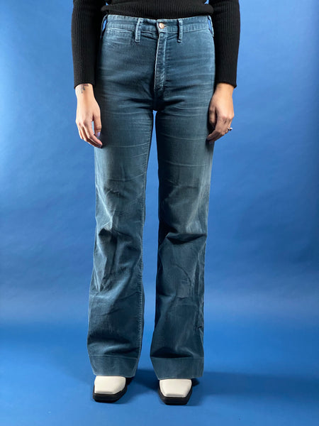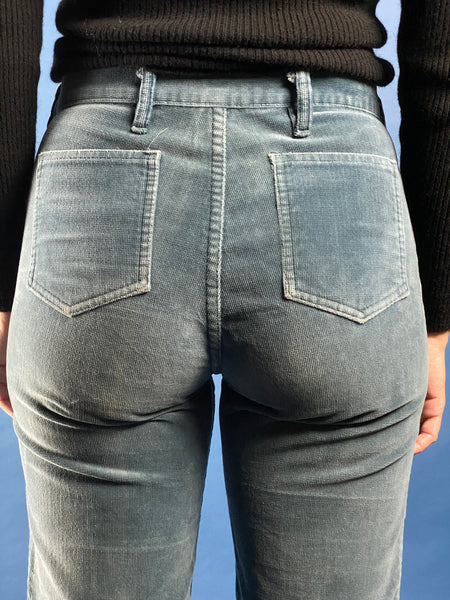 Amazing, vintage original 1970s corduroy grey/blue flare trousers.