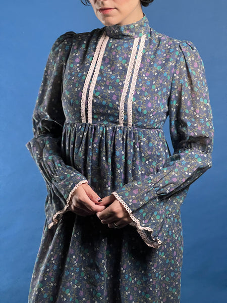 The perfect thing to don when the '70s come a-calling: this Vintage 1970s Marion Donaldson Prairie Cottage Core Maxi Floral Dress has authentic hippie detailing and all the boho vibes you could ever want! Step into the past in style!